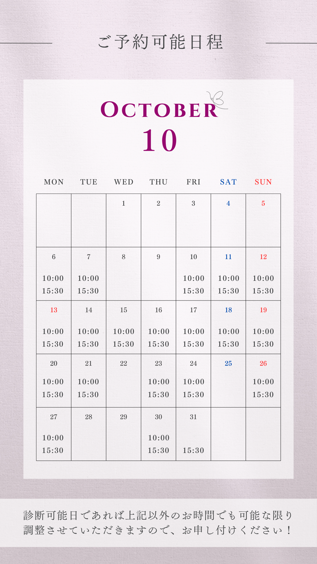 【2025年10月】最新ご予約可能日時 ※10/5更新